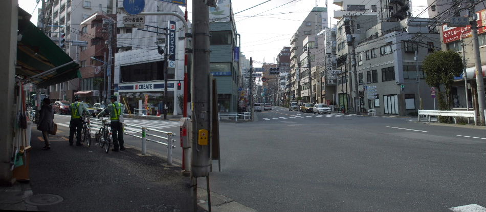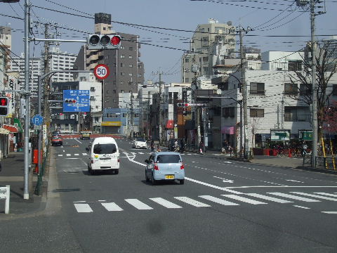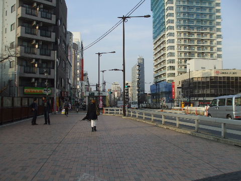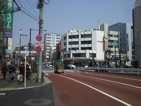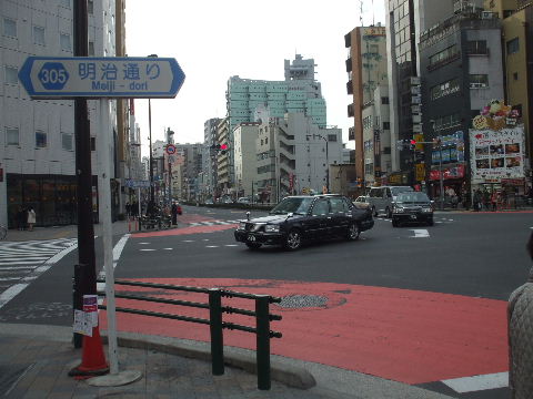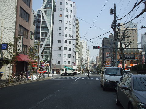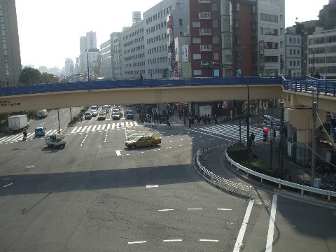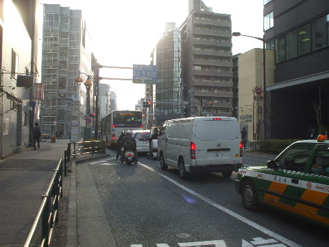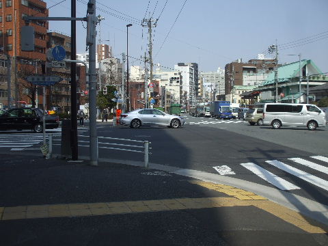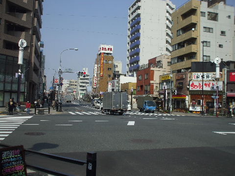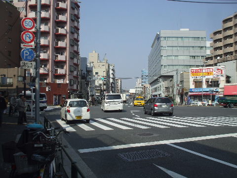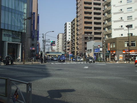 12:54森下交差点。ここで都営新宿線と交差している。 |
