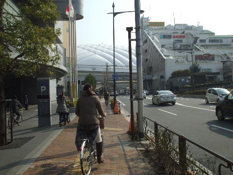 | 14:32すぐ東京ドームに突当り、右折。 |