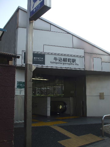 15:07あまり広くない道からさらに裏道に入っ た所にある牛込柳町駅。うっかりしていると 気が付かずに通り過ぎてしまう。 |