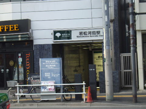 15:10若松町交差点。ここから大江戸線は斜め左に進む。交差点 名以外特に目印になるようなものも無いので気を付けていないと そのまま直進してしまいそうな所。 |