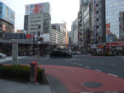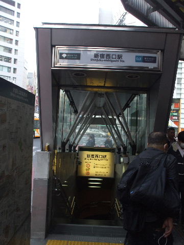 | 8:56新宿駅西口。今日は内回り(左回り)で回るので右(南)へ折れる。 |