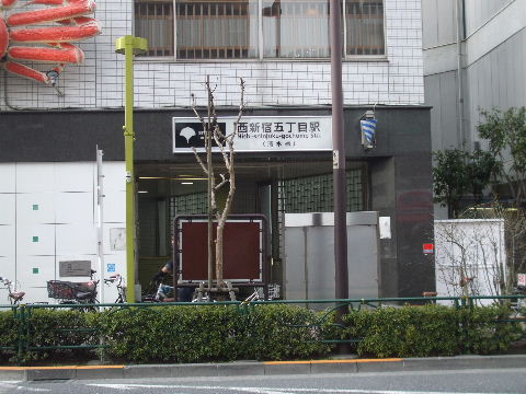 8:59西新宿一丁目交差点。初っ端から最初の駅、新宿駅の写真を 撮り忘れた。さらに南下。 |