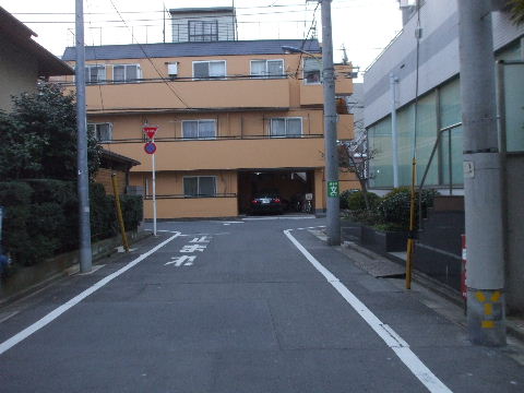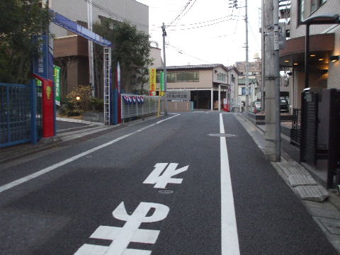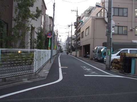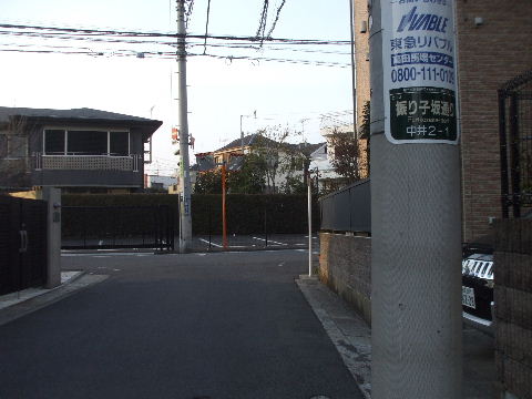 16:47大江戸線は少し手前から左 へカーブしていくのでそのトンネル の上に近いこの一本手前の道へ 左折。 |
