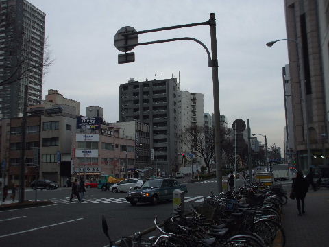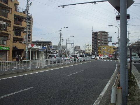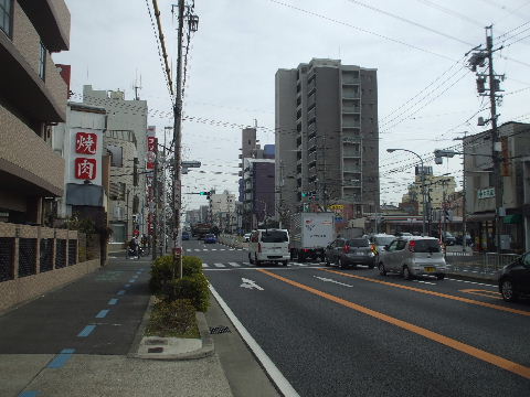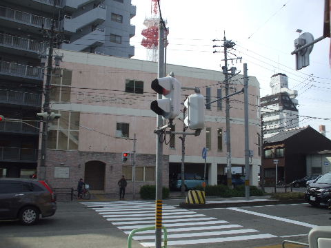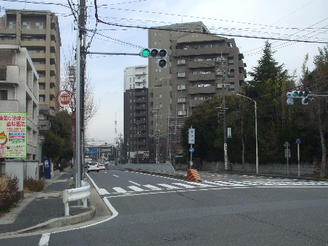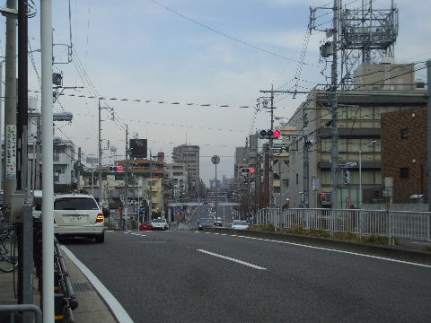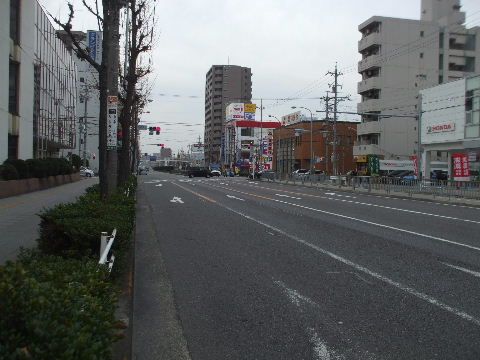 16:42八熊通に出てすぐ西の新尾頭交差点へ。名港線の金山方 面線のトンネルはこの交差点の下を通っているようだ。 |