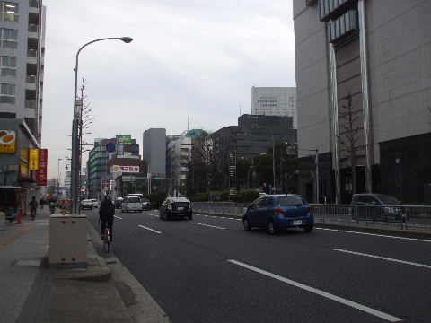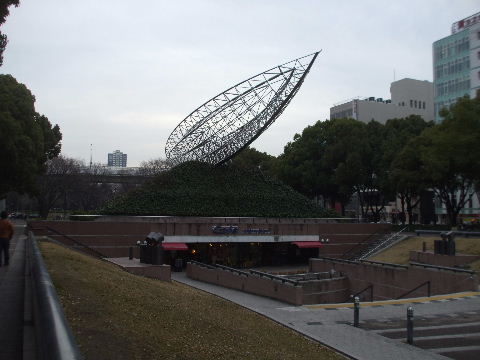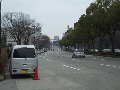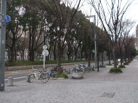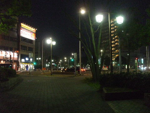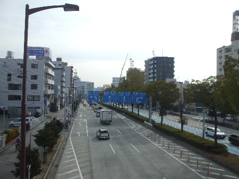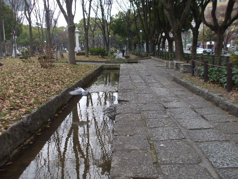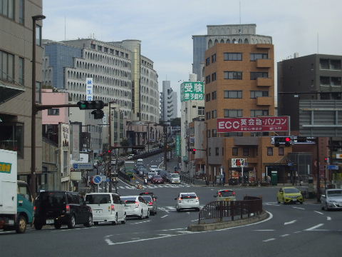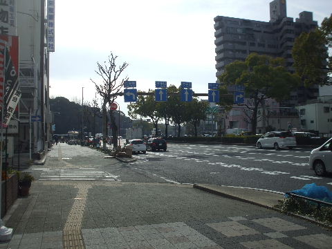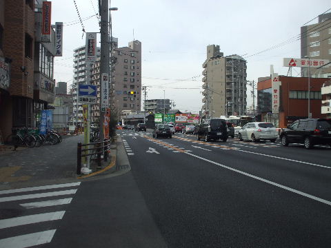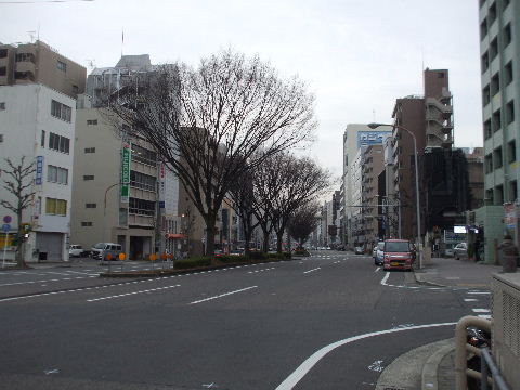 | 16:28公園南端まで行き、西の大津通に移動する。地下鉄も左手 前から右奥に大津通を斜めに横切っている。 |