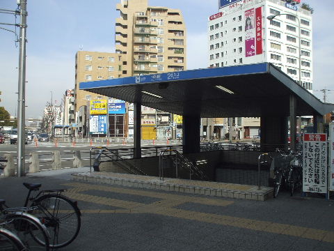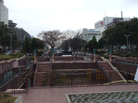 | 10:27交差点四つ角全部に出入口があるが熱田神宮側の南東角 は初詣に備えて階段の幅が広い。 |