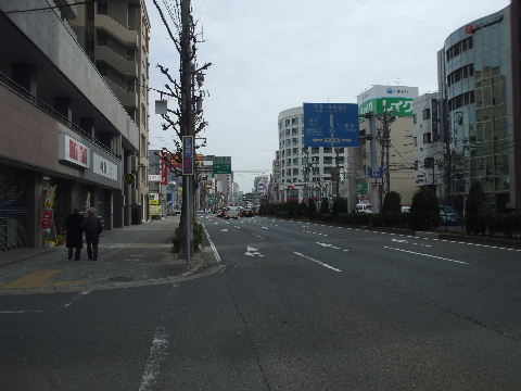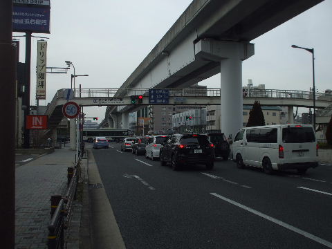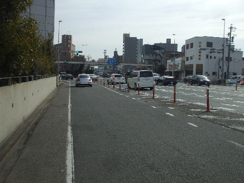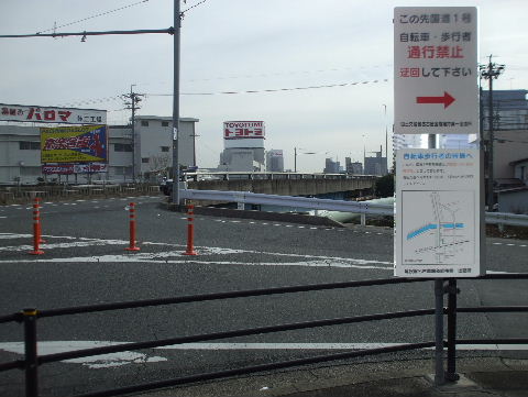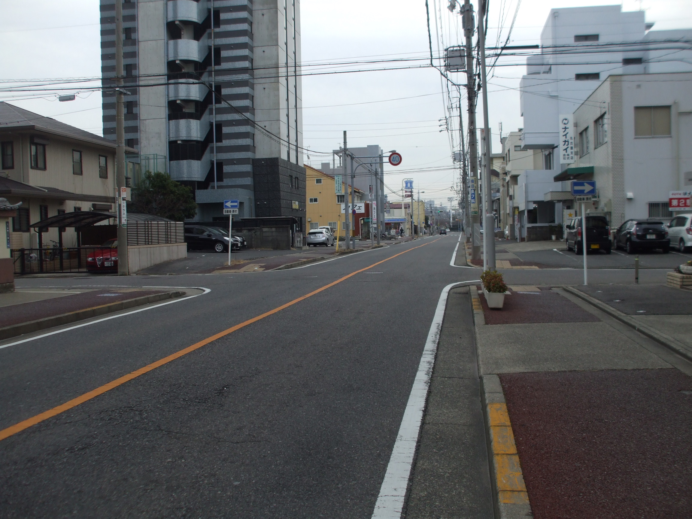 10:52陸橋が降りてきた先の内浜交差点で直進の国道1号線から 左斜め、東方向に枝分かれする道を進む。 |
