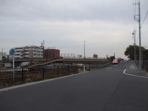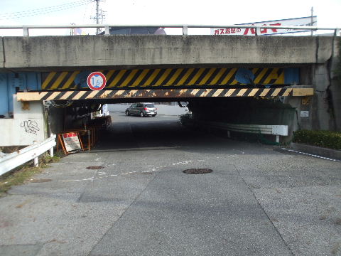 | 10:47橋を渡って新堀川沿いに国道1号線の 陸橋下に出る。この陸橋下1.6㍍しかない。 ひょっとして名古屋で一番低いかも。 |