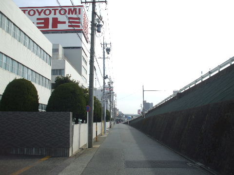 | 10:50踏切を渡ったあと、陸橋の反対側に出る。 この辺り、有名な会社の大きな工場が並んでいる。 |