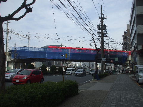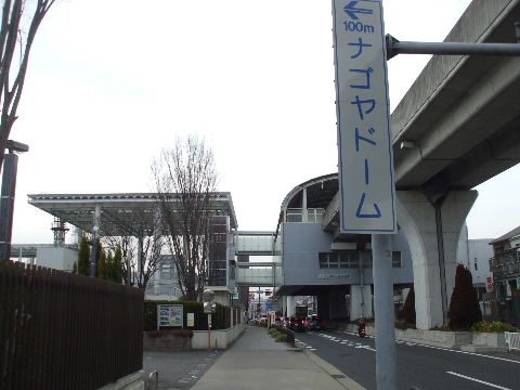 | 14:09ナゴヤドーム前矢田駅上を通過。高架上にはガイドウエイ バスの駅。 |