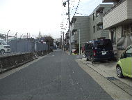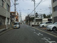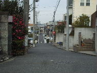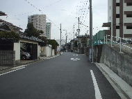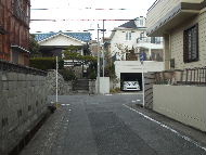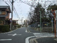 | 11:40下って上がる。 | 11:46道路では奥に見える交差点を右折で八事に出るが地下鉄は 少し早めにこの辺からカーブし民家の下を走る。ずっと奥かすかに 見えている中京テレビの電波塔の左300㍍程の所を通っているの にここでは右へカーブする。 |