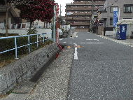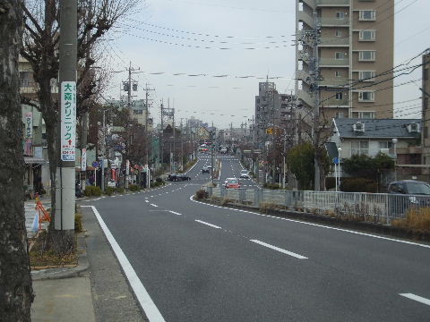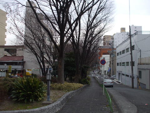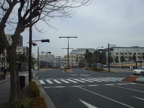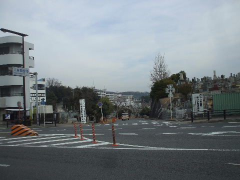| 15:13南へ進むと先に上り坂が見える。 | 15:20坂を上がった先が市役所交差点。 |