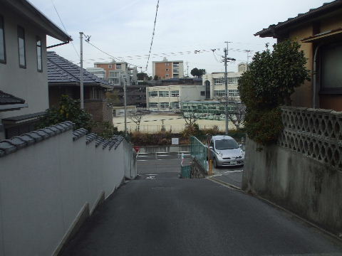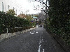 | 13:24突き当る手前で左折して坂を下った突当りに自由ヶ丘小学 校があり、右折。漸く表通りに出る。 |