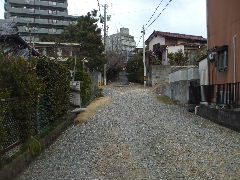 11:53左折すると市内には あまり残っていない未舗装 の砂利道を上る。 |