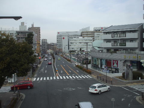 | 12:09八事日赤病院が見えてくる。駅は病院の前に ある。日赤シリーズの駅はもうひとつ、東山線の 中村日赤がありこれが第一で八事は第二。 |