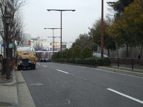 15:25市役所と県庁前を通り過ぎて名古屋城外堀に架かる大津橋 を渡り高速道路下を左折。地下鉄はここから一筋東(左)の久屋大 通下に移動する。 |