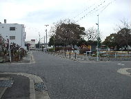 11:20弥富通1丁目交差点。この先から成るべくトンネルに近い位 置を進むため次の駅まで裏道をジグザグに進む。 |