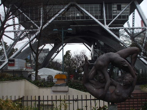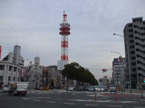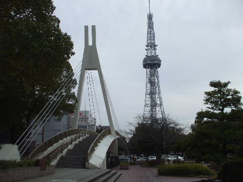 15:40地下鉄はテレビ搭の股間を通り抜ける。脚の左(東)側には 名鉄瀬戸線のトンネルがある。 |