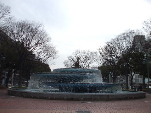 | 15:43テレビ搭の南にあるもちの木広場。この向こう地下に栄駅が あり交差する錦通下を東山線が横切っている。 |