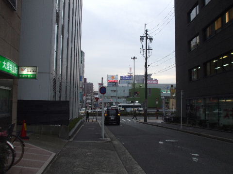 16:31市民会館前を過ぎ大津通の一筋西の道へ入ると先に出発 点の金山バスターミナルが見えてくる。 |