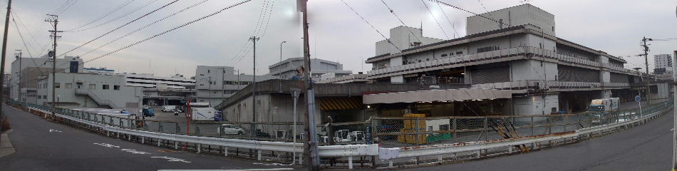 | 16:48橋の西には中央卸売市場があり地下鉄はこの下を日比野まで斜めに通り抜けている。画像奥が日比野方向。 |