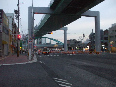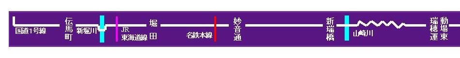 | 10:55堀田駅が下にある地下鉄堀田交差点を通過。上は名古屋高 速大高線。 |
