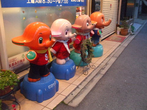 | 17:16少し進むと道端にサトちゃん4人。 | 17:26東海通駅のある交差点通過。 |