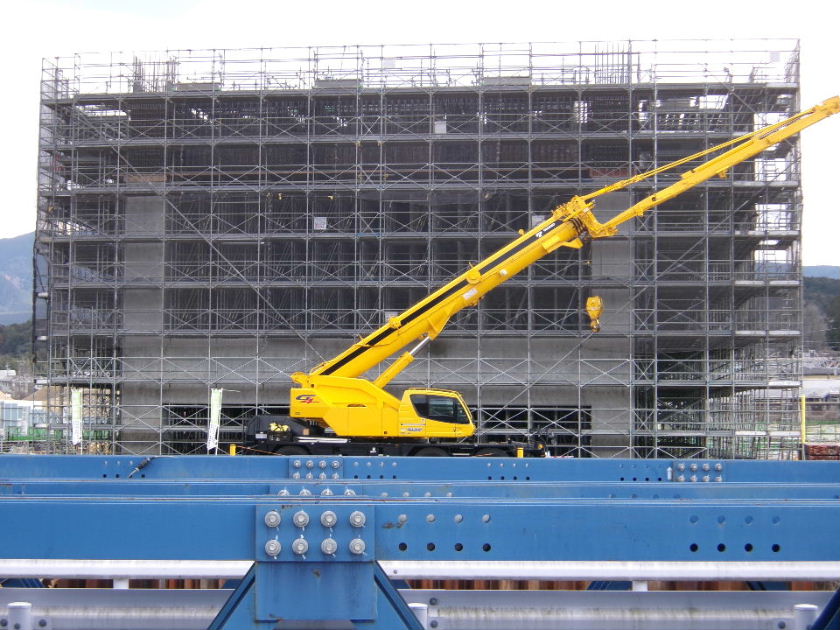 | 2018年05月26日。補強工事が本格的に始まったか 色々でかい装置が並びだしている。 |