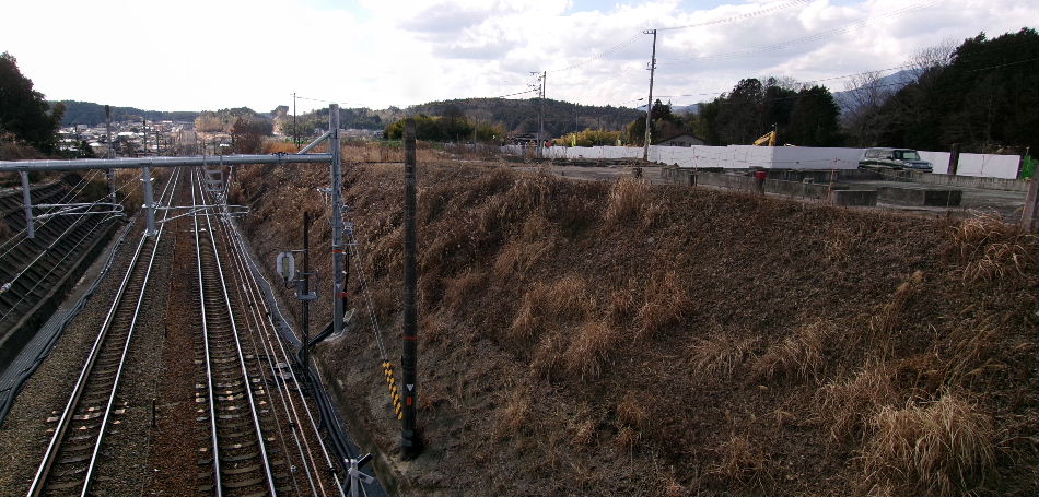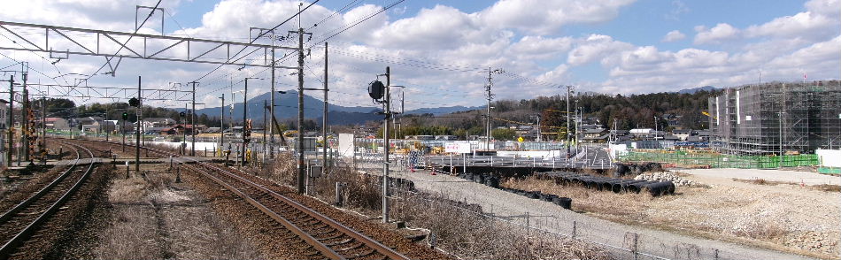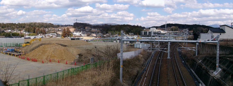 2019年02月10日。最西端から駅方向を見る。椿神社の辺 まで見えるようになった。 |