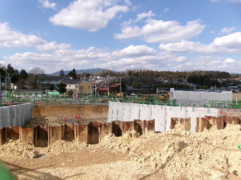 2021年02月07日。線路下の掘り下げ工事が始まっている。 これで地下のホームの深さまで? |