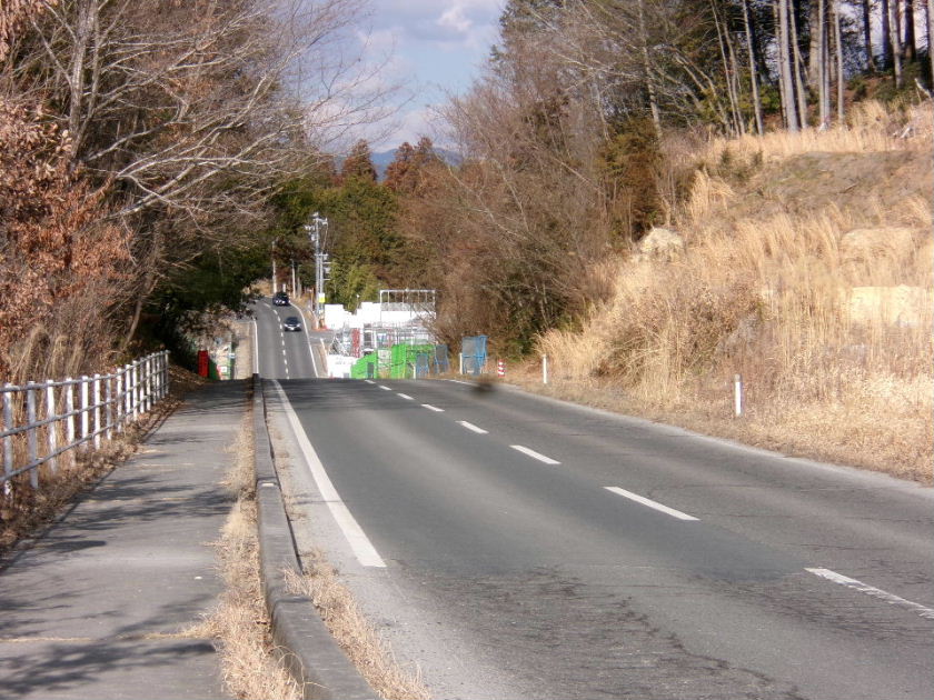 | 2021年10月24日。手水場工事中。 | 2021年10月24日。椿神社沿いの道を北から見る。左の工事 柵の中にアスファルトが敷かれて道路が出来ている。道路が こちらへ迂回し今の道路上で工事をするようだ。 |