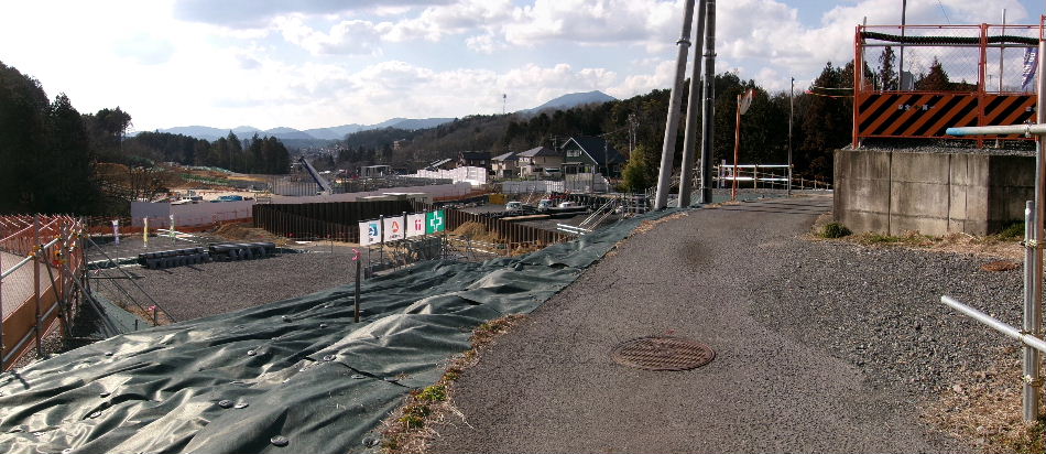 2023年03月12日。工事塀で囲われ撤去された。中が 見えないがあとは水たまりと基礎の撤去工事が続いて いるものと思われる。 |