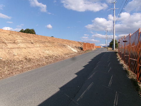 | 2020年08月02日。最西端から二筋の道が通行止めになっ て高い塀が立ち中が見えなくなった。 |
