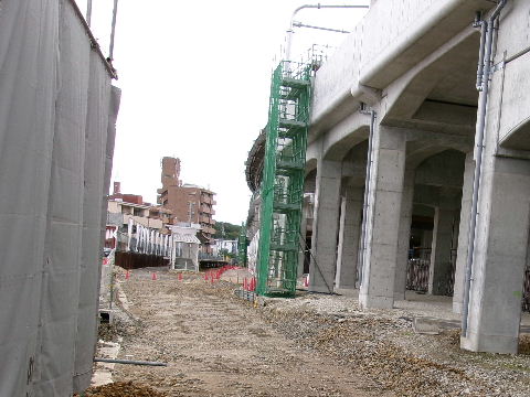 | 2020年06月07日。 | 2020年06月07日。小幡駅階段から見る。既に土が入れられ ている。 |