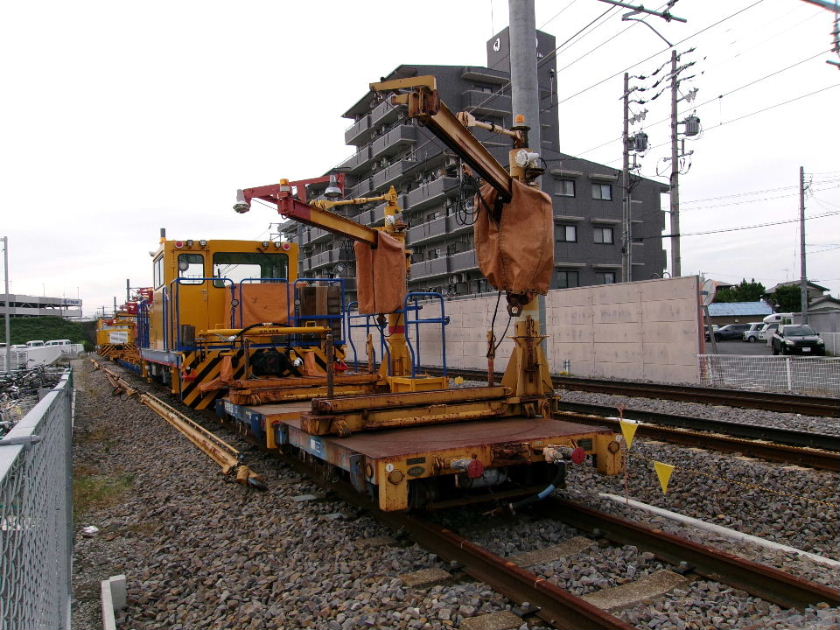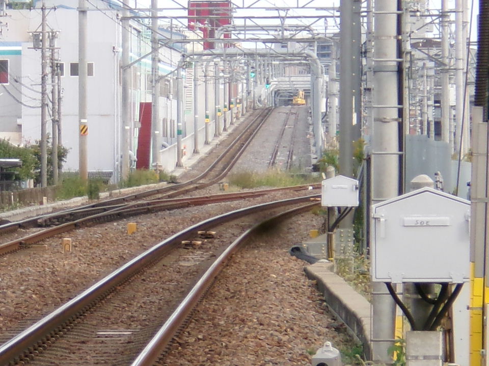| 2015年10月04日。仮線が出来たあと、初めて電車が通っているの を見た。回送電車がゆっくり一つ木方向へ走って行った。 |