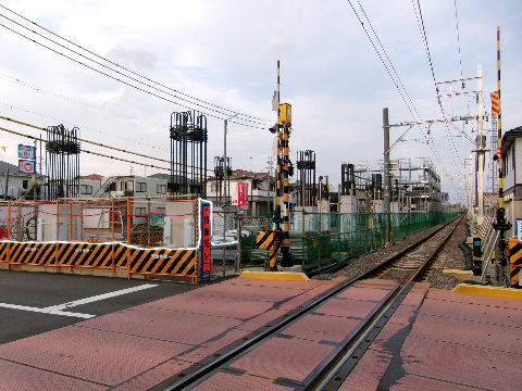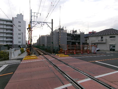 | 2018年06月17日。駅北の踏切から見ると仮線を敷くかと思われた