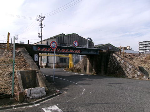 2012年1月26日。新幹線BV側から見る。ここも踏切が出来るよりも以前、ナゴヤ球場正門前駅の入口が出来るまでは使われない架道橋だった。 |